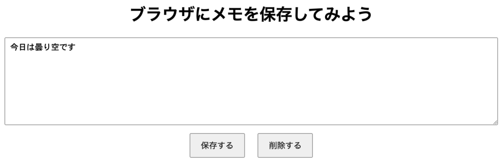 | メモを入力 | ブラウザのlocalStorageに保存 |