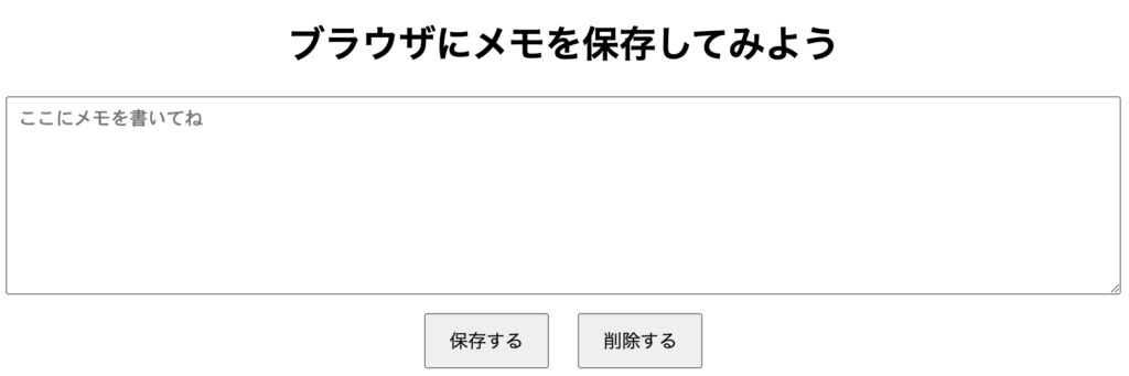 上記サンプル「ブラウザにメモを保存してみよう」のイメージ