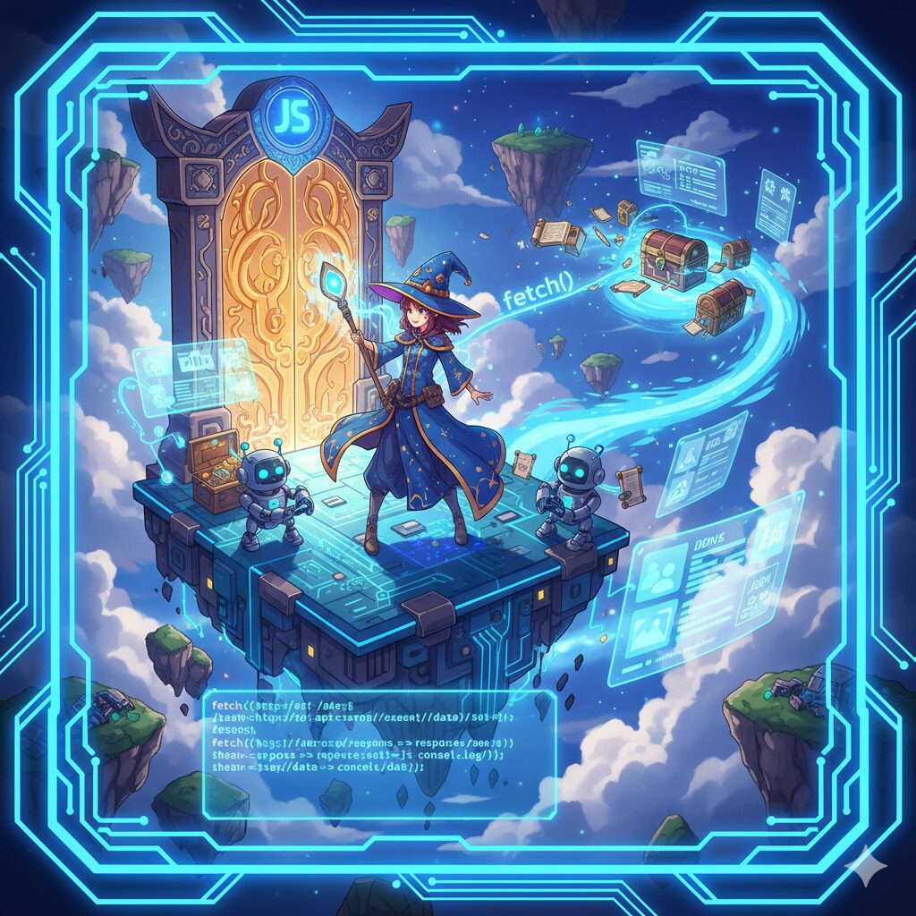 そうですね。JavaScriptでは、ひとつの大きな処理をいくつもの関数に分けて作るのが基本です。fetchは“情報を取りに行く専用の関数”で、役割を分けることでコードが読みやすく、トラブルにも強くなるんですよ。さっそく実例を見てみましょうか。