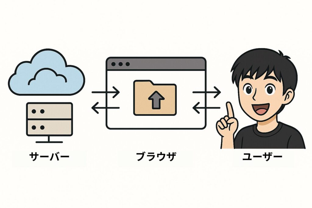 まず“通信”とは、ブラウザ(あなたのPCやスマホ)がサーバーと情報をやり取りすることです。