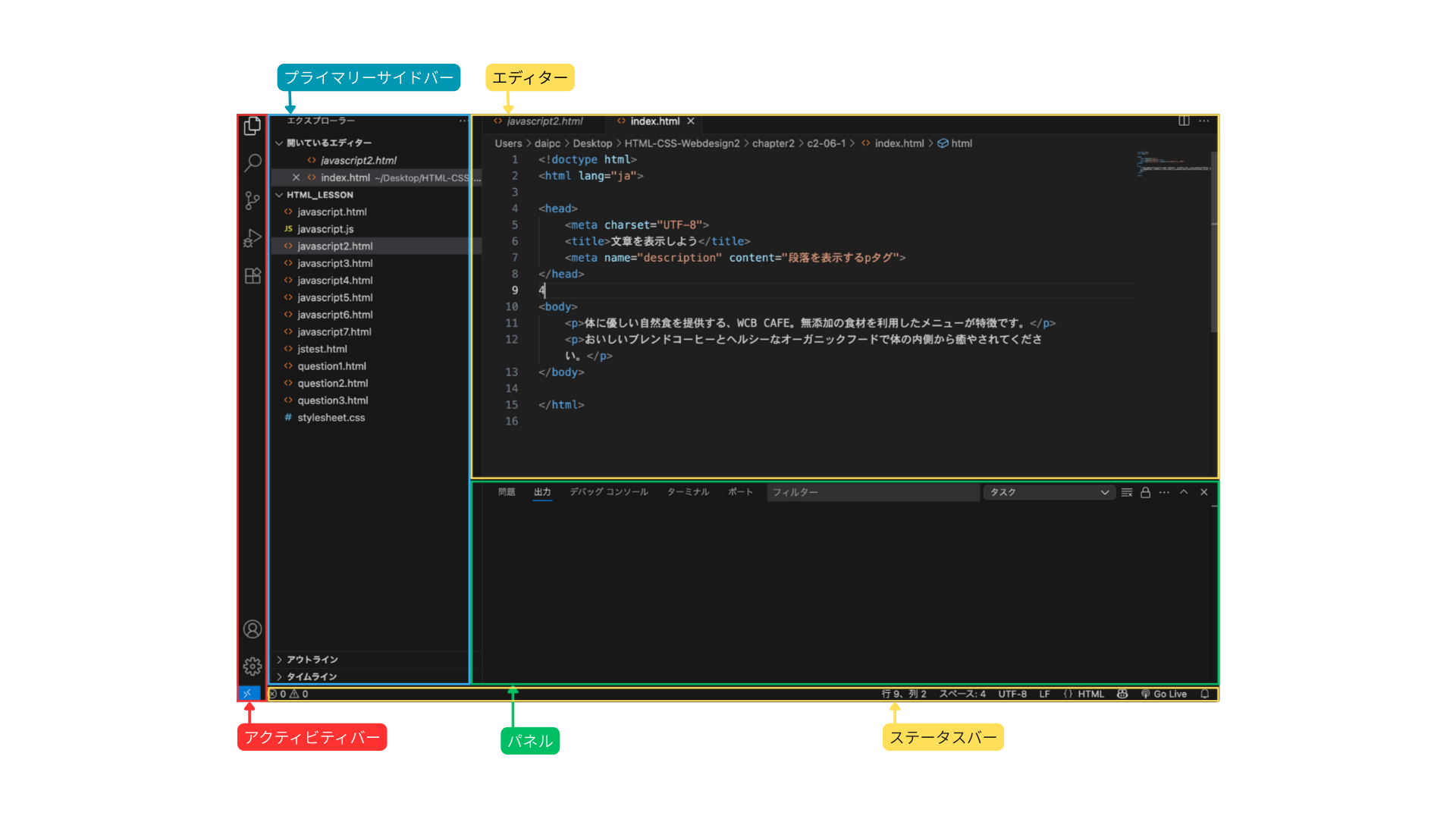 Visual Studio Code(VSコード)の基本レイアウト