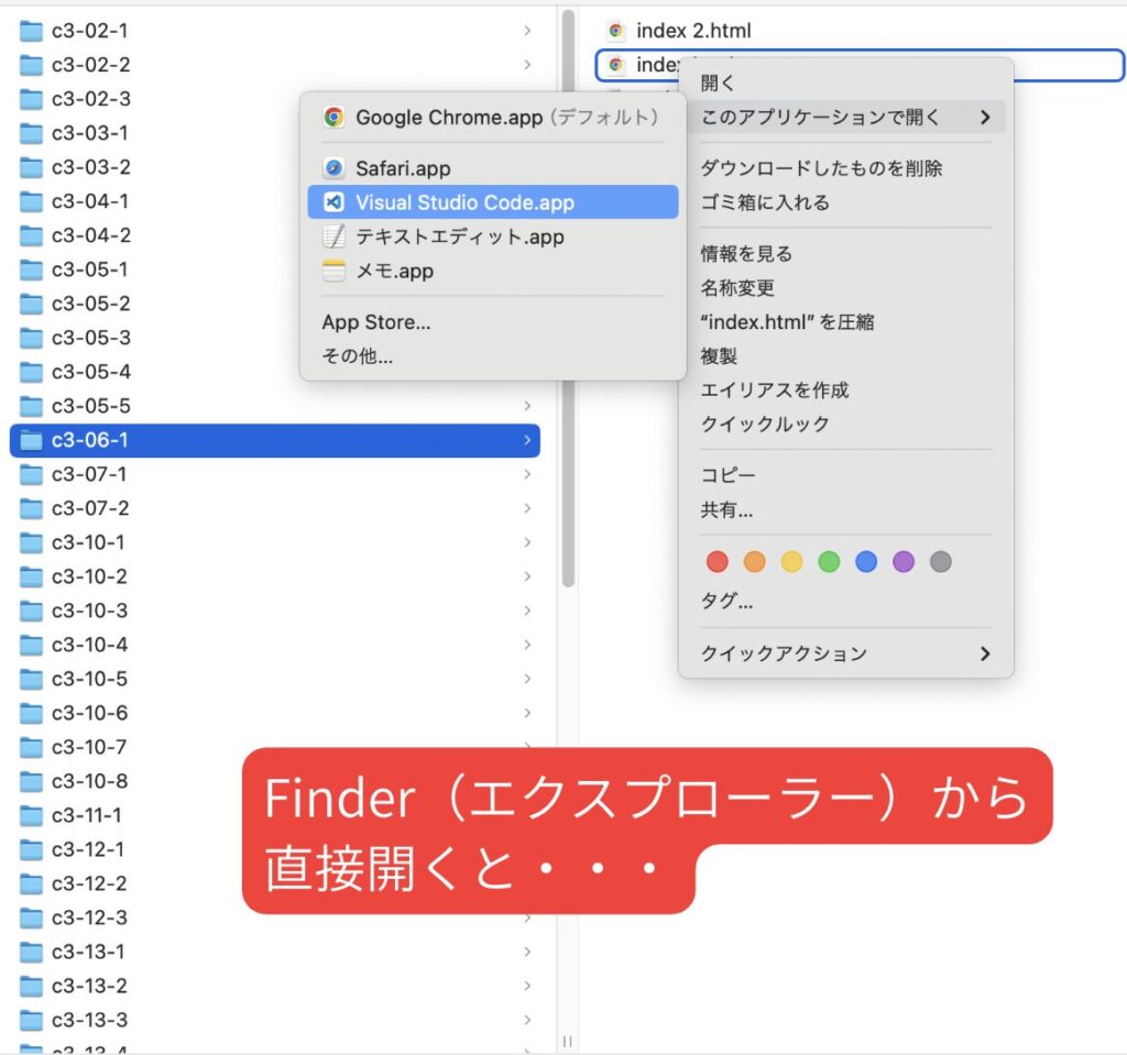 あれ・・??? あるくさん、さっき「【Go Live】をONにしていたけど自動反映されなかった」って言ってたよね。そもそもFinderからファイルを直接開いていたら、Live ServerをONにできずエラーになっちゃうんじゃなかったっけ?