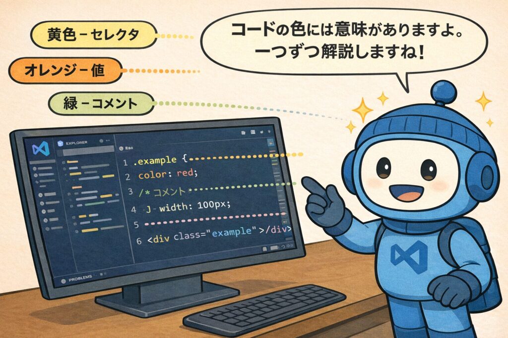 VS Codeの色分けは、「見た目」ではなく役割を瞬時に見分けるためのヒントなんです。たとえば