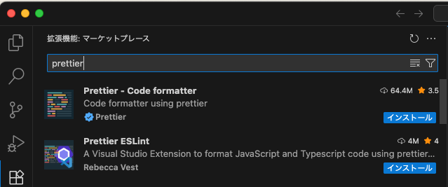 Prettierは、VSコードの拡張機能として簡単に導入できます。